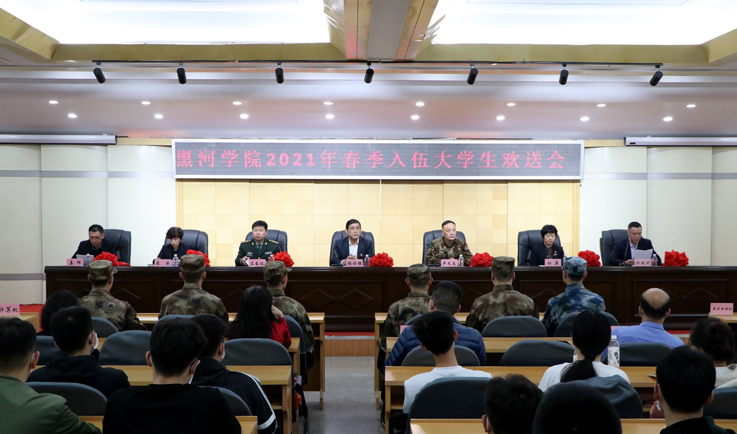 本网讯(特约记者 梁策 摄影 周春晓 杨倩)3月18日下午,我校2021年春季应征入伍欢送会在明德楼五楼多功能厅举行。党委副书记张焕强,黑河军分区动员处处长卢文友,黑河市爱辉区武装部部长左长征,各学院党总支书记、辅导员、学生代表及相关部门负责人同2021年春季全体应征入伍学生、往年退役士兵代表出席会议。会议由学生工作部(处)·武装部部长刘铁刚主持。