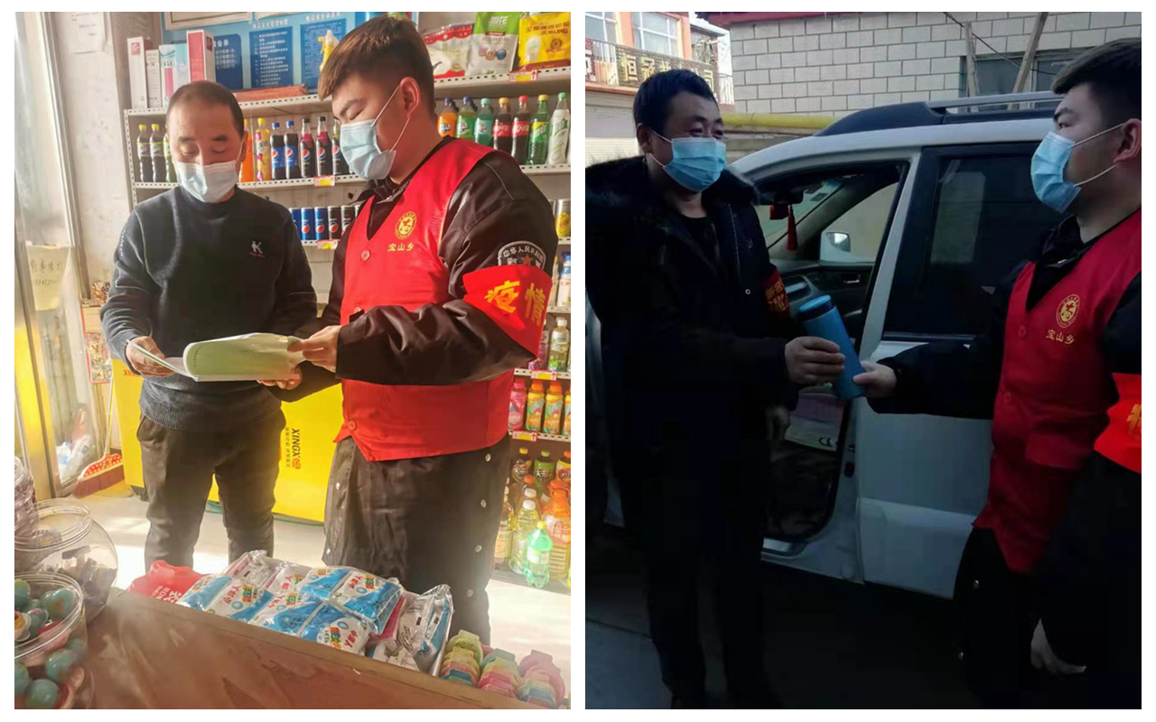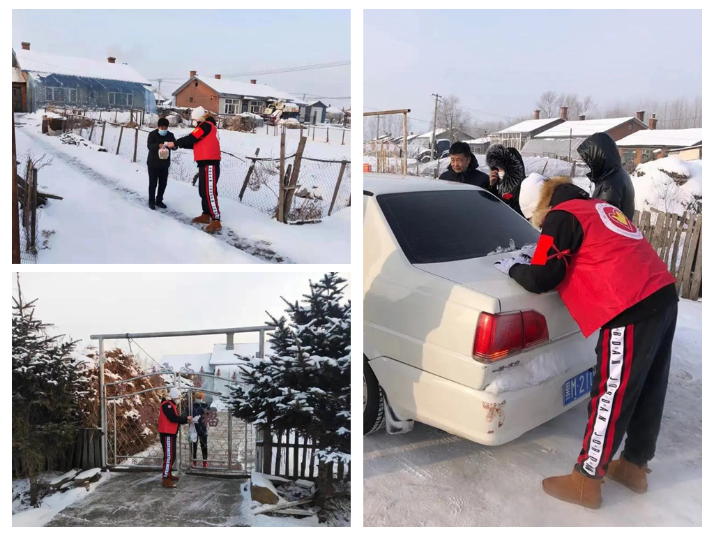 “因为咱家这里还没有进行封城管控,还会有很多流动人口,所以叔叔阿姨们不可以掉以轻心啊。”在齐齐哈尔市甘南县宝山乡,计算机与信息工程学院2019级科技1班的张佳琦和其他志愿者、社区工作人员负责对每个进出小区的人做好排查消毒、体温监测,并为社区内年迈老人采购生活用品,对周边商铺进行防疫知识宣传。