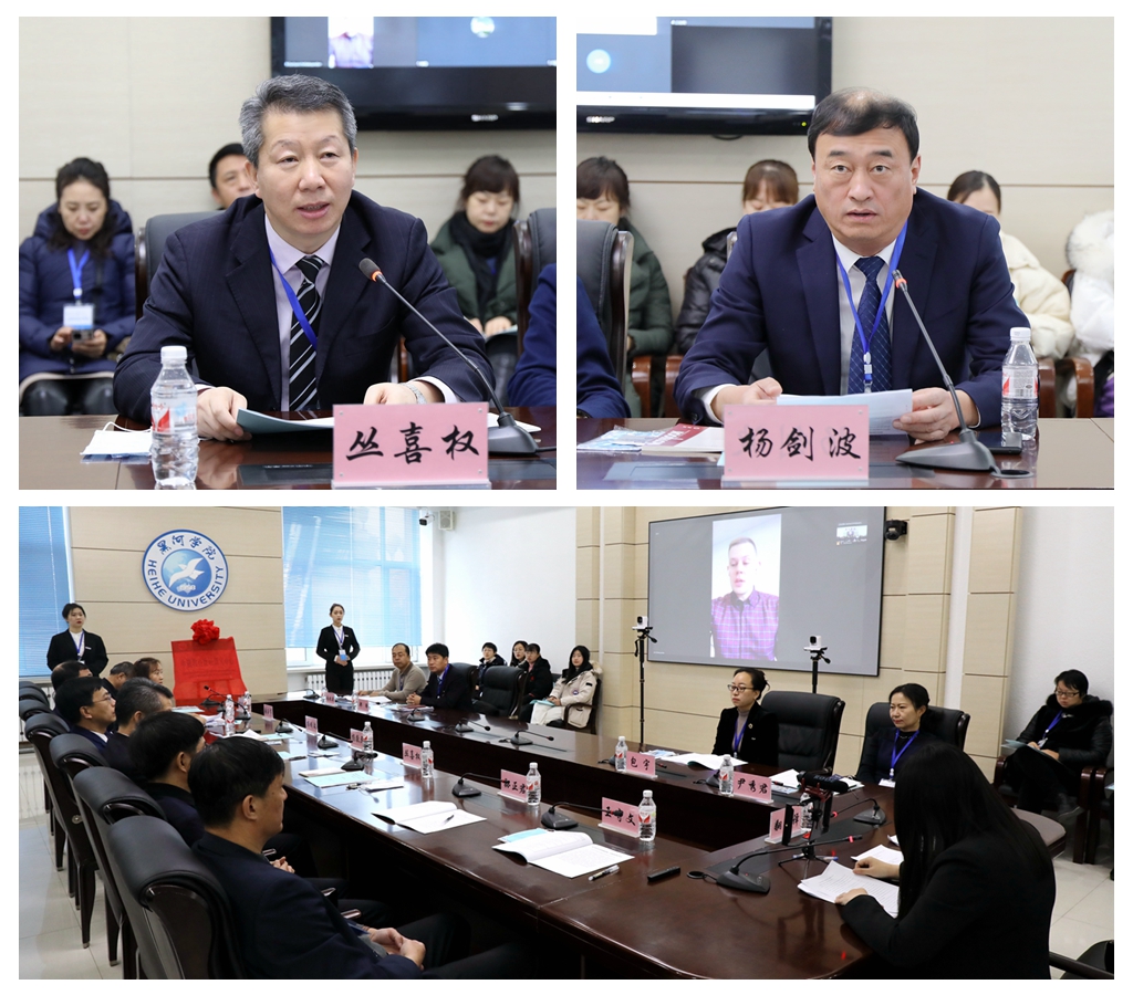 副校长丛喜权在讲话中指出,“文明因多样而交流,因交流而互鉴,因互鉴而发展。”在新冠肺炎疫情防控背景下,全面深化中俄合作符合两国人民的根本利益,对促进地区及世界的和平、稳定、发展发挥着重要作用。中俄双方通过线上线下举行学术研讨会,集聚专家学者智慧,充分发挥中俄教育比较优势,加强中俄高校间教育交流与合作,凝聚更多思想共识,为推动两国的教育交流合作作出更大贡献;布拉戈维申斯克国立师范大学科研副校长巴尔巴里奇·亚历山大·亚历山德罗维奇希望通过本次研讨会,进一步加深两国学者对双方教育体系、制度、模式的认识,在今后的合作中就相关问题加深交流和探讨;黑河市技师学院院长杨剑波表示“中俄教育比较研究中心”的揭牌成立为中俄教育的交流合作与比较研究搭建了更高的平台,中俄学者在交流研讨中互相借鉴各自成功经验,分享更多学术观点,对黑河市教育决策和中俄区域教育合作发展起到更好的理论支撑和智力支持。