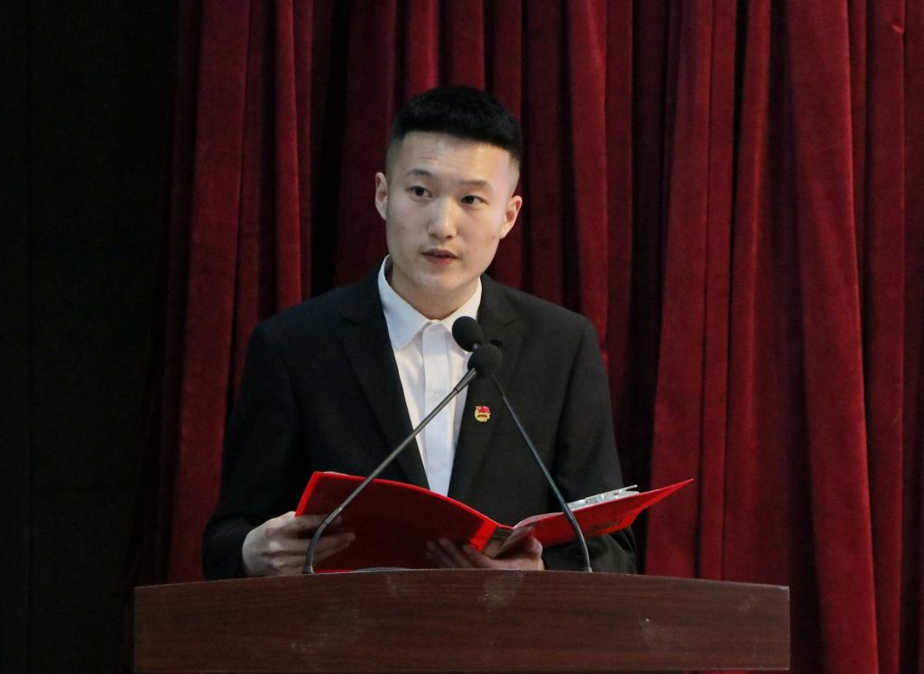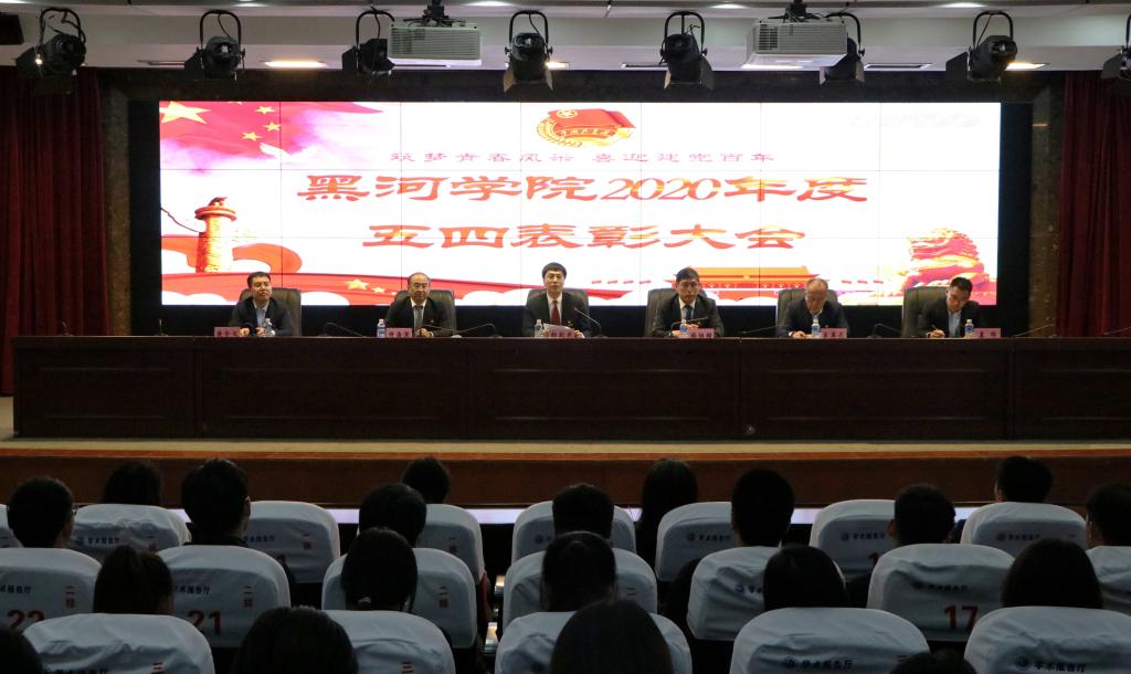 表彰大会在嘹亮的国歌声中拉开帷幕。百名新团员在团旗下庄严宣誓,与会领导为新入团学生佩戴团徽并赠送青年大学习笔记;团委副书记姜辉宣读《关于表彰黑河学院2020年度共青团工作先进集体和先进个人的决定》,与会领导为获奖先进集体、先进个人代表颁奖。