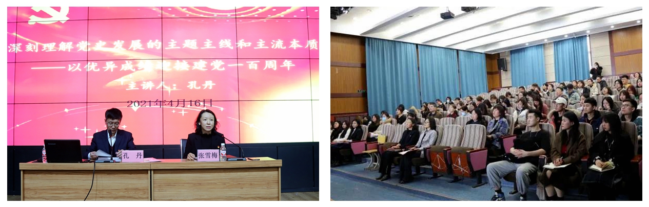 4月16日,外国语学院党总支特邀市委学党史宣讲团成员孔丹为全院师生党员、部分入党积极分子作题为“深刻理解党史发展的主题主线和主流本质——以优异成绩迎接建党一百周年”的专题辅导报告。报告从中国共产党诞生的国内国际背景、中国共产党百年历史发展脉络、树立正确党史观三个方面,带领全体党员重温了中国共产党走过的100年的光辉历程。