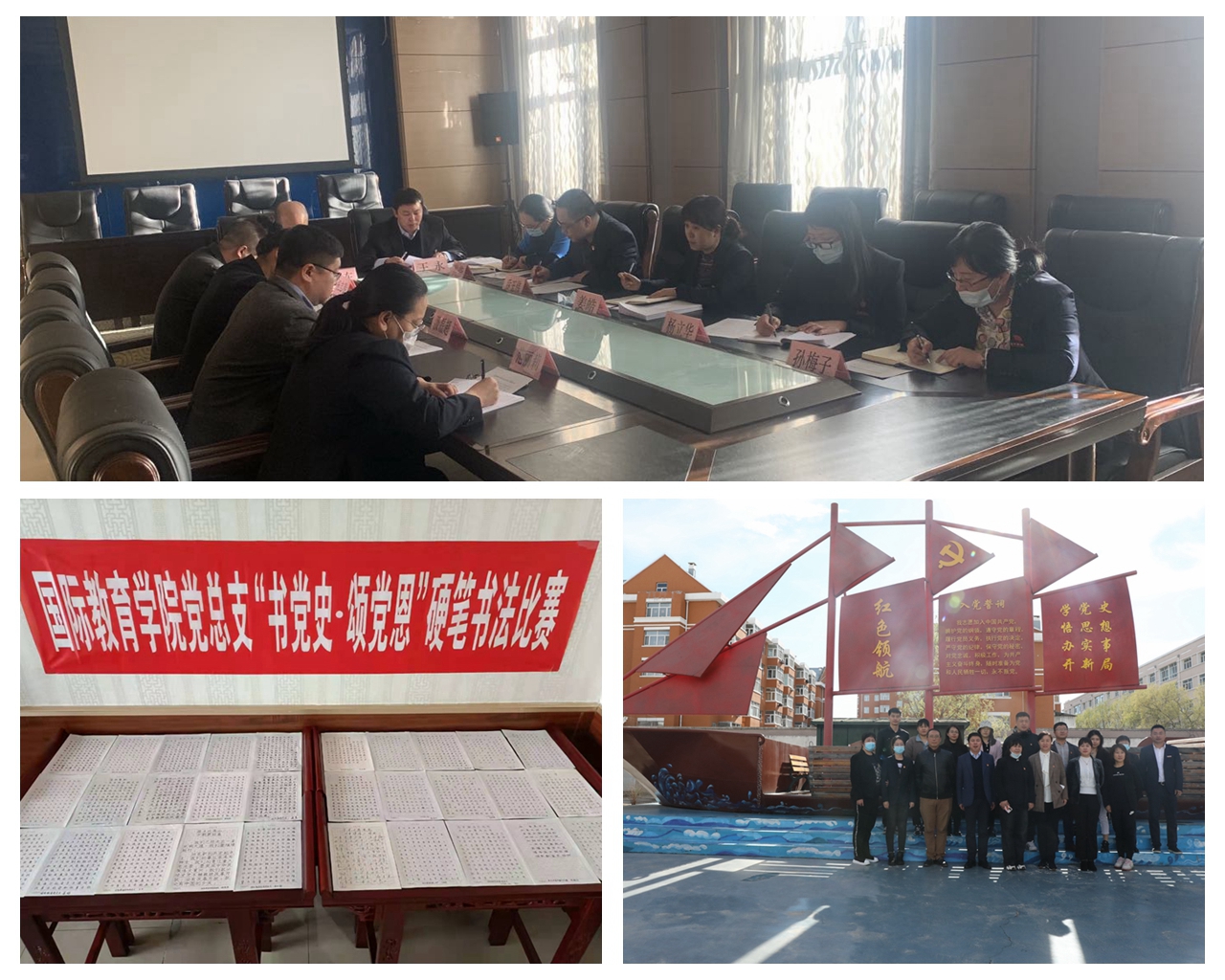 讲活历史故事、用活红色资源、搞活教育形式……在党史学习教育中,国际教育学院深度挖掘红色资源,积极创新方式方法,突出红色理论宣讲,促进全院党史学习教育和红色教育融会贯通。学习教育开展以来,通过参观中苏抗战历史纪念馆、王肃烈士纪念馆,现场聆听党史宣讲进社区重温红色党史故事,组织学生到烈士陵园开展“缅怀革命先烈”清明祭扫活动,举办“书党史·颂党恩”硬笔书法比赛,观看《建党伟业》等红色影片,推进与黑河海关“百年百部”共联活动,踏寻红色足迹,汲取红色力量,进一步激发了党员干部干事创业的热情,增强了集体的凝聚力和向心力。