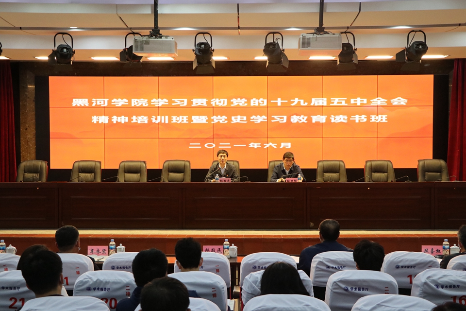 本网讯(记者 赵宇 摄影 杨倩)今年是中国共产党成立100周年,是“十四五”规划开局之年,也是全面建成小康社会、开启全面建设社会主义现代化国家新征程的关键之年,按照有关要求,我校于6月2—4日圆满举办黑河学院学习贯彻党的十九届五中全会精神培训班暨党史学习教育读书班。