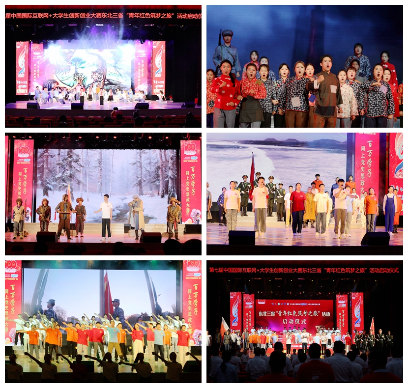 由音乐学院师生自编自演的红色音乐剧《还我河山》再现了“七七事变”后,东北军爱国将领马占山率领中国军队决战江桥,向发动进攻的日本侵略者奋起反击,打响了武装抗日斗争的第一枪的故事。黑龙江省教育厅高教处原创的抗联情景剧《山河筑梦》,通过“青年红色筑梦之旅”活动中青年学生的时空穿越,再现了东北抗日联军先辈们十四年浴血奋战的光辉历程,伟大的“抗联精神”使现场青年学生的心灵深受震撼,进一步激发了奋发成才、矢志报国的决心。《群颂·传承》《铭记》、合唱《青春筑梦在路上》《歌唱祖国》等节目,也分别以不同艺术形式展现了亿万华夏儿女在中华民族伟大复兴的征程中实现人生价值,用青春书写了无愧于时代、无愧于历史的华彩篇章,让与会师生从党的故事、革命的故事、英雄的故事中汲取信仰和奋斗的力量,同上一堂党史课。
