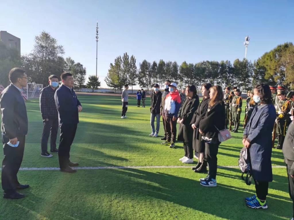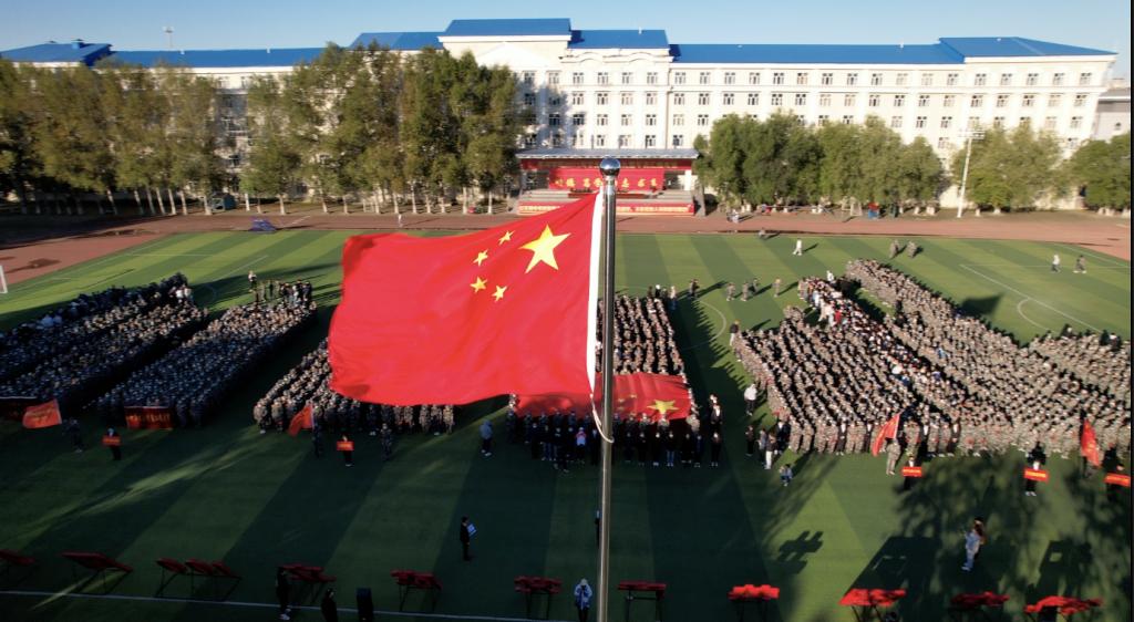 清晨六时三十分,升国旗仪式正式开始,大学生国旗护卫队队员迈着矫健的步伐,昂首阔步地护卫国旗入场,伴随着雄壮的《义勇军进行曲》,五星红旗迎着朝阳徐徐升起。全体国旗护卫队队员向国旗行军礼,在场4000余名师生庄严肃立,面向国旗行注目礼,表达对抗日先烈的缅怀与纪念。升旗仪式后北疆青年们在国旗下以“勿忘国殇”发言、“强国有我”朗诵、“使命担当”宣誓,表达了北疆学子对祖国的深深祝福和对奋斗新时代的美好向往。