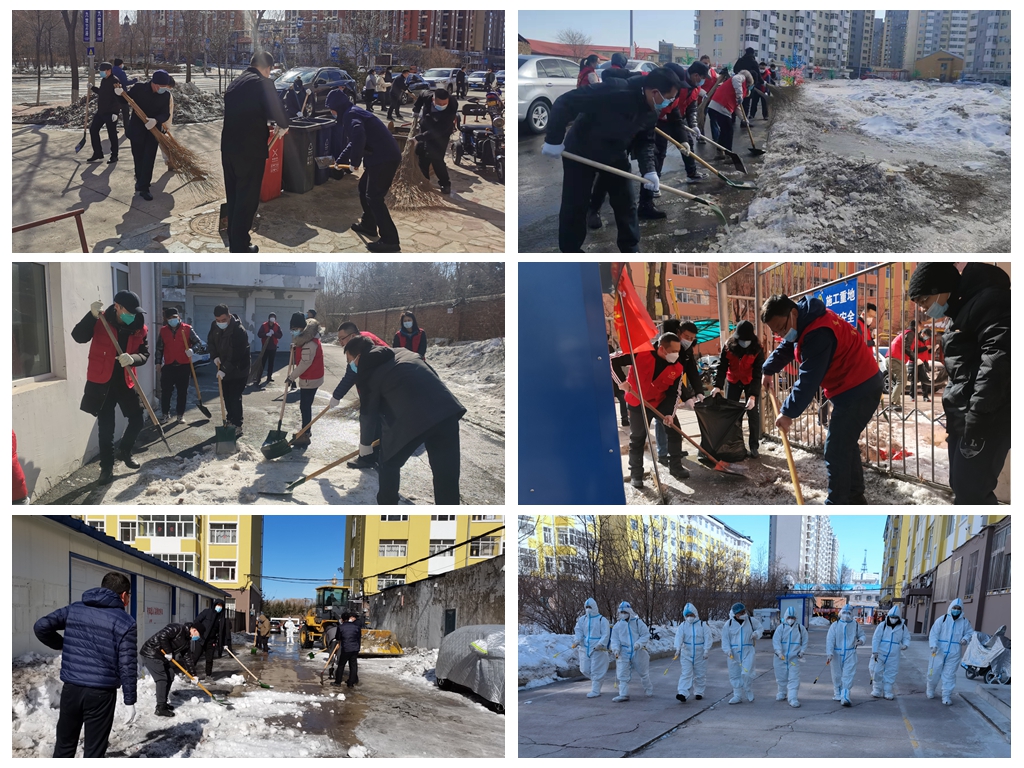 当日上午,学校各党总支、直属党支部的百余名党员干部、志愿者,拿着扫帚、拖布、铁铲等工具,深入金融佳苑小区、财政小区、南湖雅苑、企联大厦等六个值守小区,对小区内单元楼道、绿化带、垃圾收集点、健身器材场等公共空间和小区周边环境的卫生死角进行了全面的清洁消毒,并结合近日降雪冰冻实际,出动铲雪车对小区内积雪、浮冰进一步铲除,使小区环境变得干净整洁、焕然一新。同时,参与活动的党员职工还向过往群众广泛宣传防疫和爱国卫生运动相关知识,引导群众树立科学防控观念,养成讲文明、讲卫生的健康生活方式,自觉参与到爱国卫生运动中。