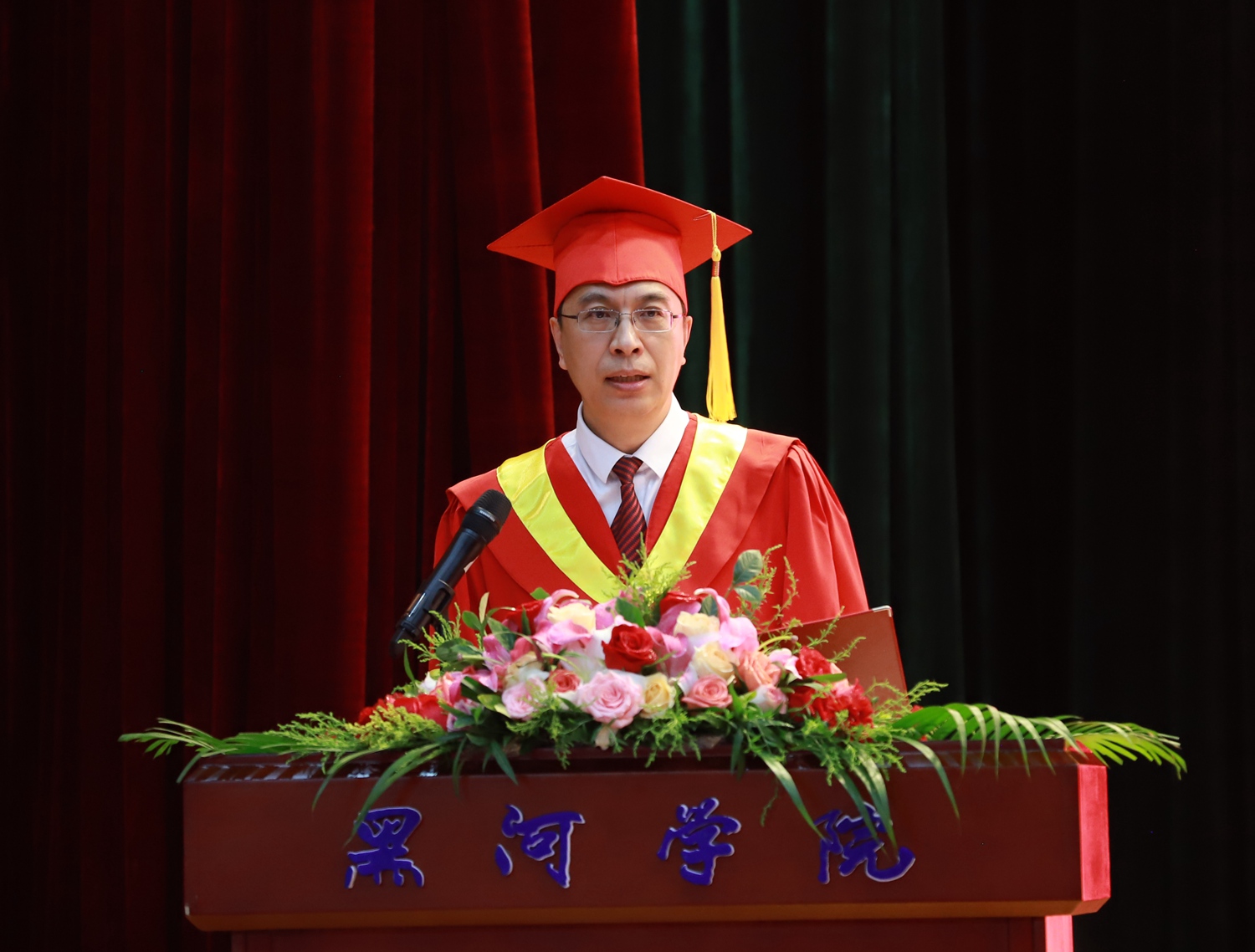 杨敬民代表学校诚挚邀请未能参加学位授予仪式的本届和往届毕业生,在今后任何一年返校参加一次学位授予仪式。他衷心希望同学们前程锦绣,青云万里,唱响属于黑河学院人的新时代青春之歌。