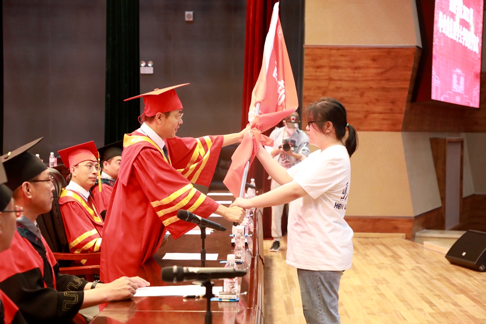本网讯(记者 赵宇 摄影 关月 郭瑞)筑梦北疆,数载寒窗,骊歌声起,扬帆远航。6月24日,学校2022届毕业生毕业典礼暨学位授予仪式在明德楼礼堂举行。学校党政领导班子成员,各学院院长、书记、辅导员、班主任,各部门负责人及部分毕业生代表在现场参加典礼仪式。毕业生与家长、校友、教职工线上线下欢聚一堂,共同见证学子们完成学业开启人生新征程的重要时刻。典礼由党委副书记、工会主席张焕强主持。