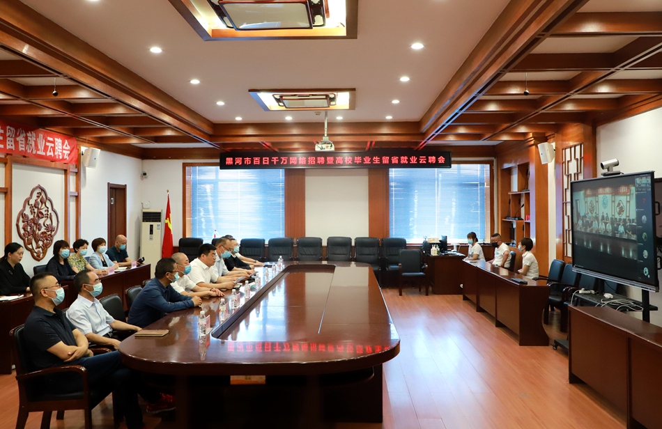 本网讯(特约记者 王晓伟 摄影 郭瑞)为深入落实省第十三次党代会精神,促进更多高校毕业生留省就业创业,推动龙江全面振兴全方位振兴,由黑河市人力资源和社会保障局、黑河市营商环境局、黑河市发展和改革委员会、黑河市总工会、黑河市工业和信息化局、黑河市科技局、共青团黑河市委员会及我校联合主办,黑河市就业服务中心、爱辉区就业服务中心、自贸区人力资源和社会保障局、黑河市中小企业协会承办的百日千万网络招聘暨高校毕业生留省就业云聘会于6月22日在我校举行。校党委副书记王春雷参加会议并讲话。
