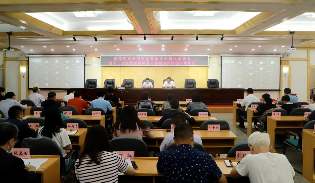 本网讯(记者 赵宇 摄影 关月 郭瑞)为深入学习习近平新时代中国特色社会主义思想,贯彻落实党的十九届六中全会精神和省第十三次党代会精神,全面提升干部能力作风,推动学校各项工作再上新台阶,6月16—17日,黑河学院学习贯彻党的十九届六中全会、省第十三次党代会精神暨干部能力作风提升培训班圆满举行。党委书记杨弘宇出席开班式并作动员讲话,学校领导班子成员、全校处科级干部、党支部书记、组织员参加会议。会议由党委副书记、工会主席张焕强主持。