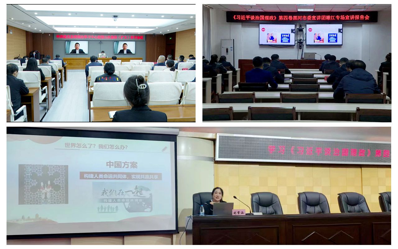 在学习文本的基础上,马克思主义学院还围绕《习近平谈治国理政》第四卷开展学理阐释,2篇理论阐释文章在《黑河日报》理论版刊载;3名教师入选黑河市《习近平谈治国理政》第四卷理论宣讲团,为嫩江市、逊克县及我校辅导员培训班、2022级新生作专场报告,通过学理阐释和宣讲进一步推动学习成果转化。