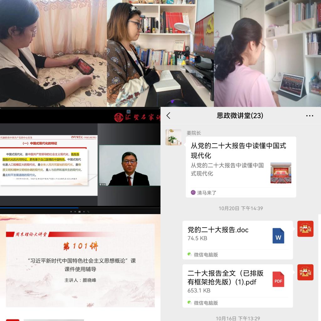 收看直播认真学。学院党总支根据制定的党的二十大精神学习方案进行统筹安排,组织全体教师收听收看大会直播,认真聆听习近平总书记作的题为《高举中国特色社会主义伟大旗帜为全面建设社会主义现代化国家而团结奋斗》大会报告,第一时间了解总书记在党的二十大报告中提出的一系列新观点、新论断、新思想、新战略、新要求。