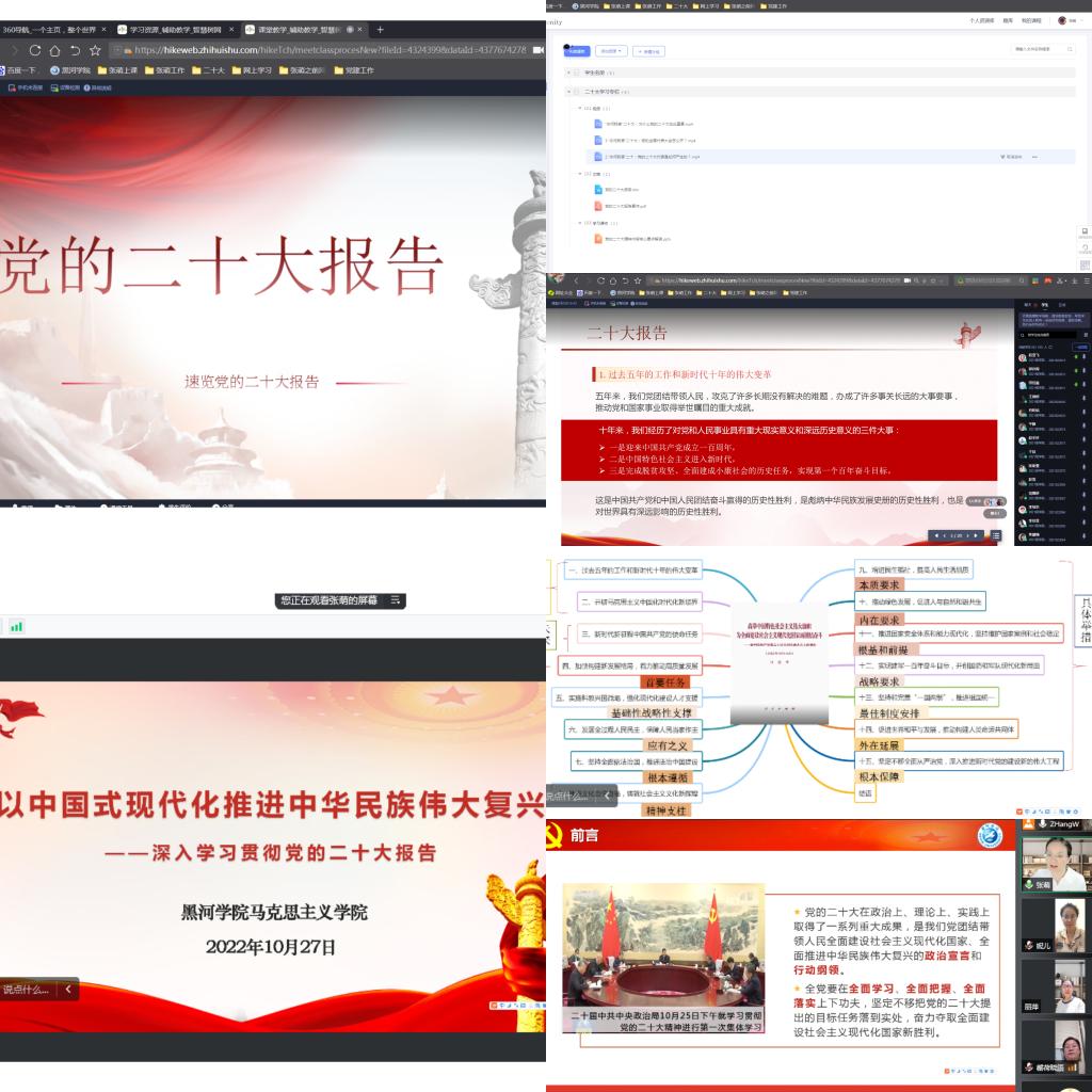 转化实践促进学。充分发挥马克思主义学院教师的学科和专业优势,统筹教学、科研、宣讲等各项工作,围绕“党的二十大精神进课堂”进行集体备课,将党的二十大报告中的创新理论“带着热气”进教材、进课堂,进学生头脑,组织教师申报课题,开展党的二十大专项课题理论研究,以支部为单位开展宣讲,形成总支书记带头讲、党小组长争先讲、党员教师生动讲的良好局面。