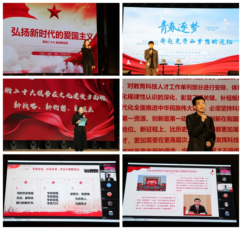 本网讯(特约记者 王平 摄影 彭森)为深入学习贯彻党的二十大精神,帮助各位辅导员进一步感悟思想伟力,吃透精神实质,把握核心要义,推动党的二十大精神在学校落地落实,12月14日,学生工作部(学生处)·武装部举办“贯彻二十大·奋进新征程”微党课大赛。