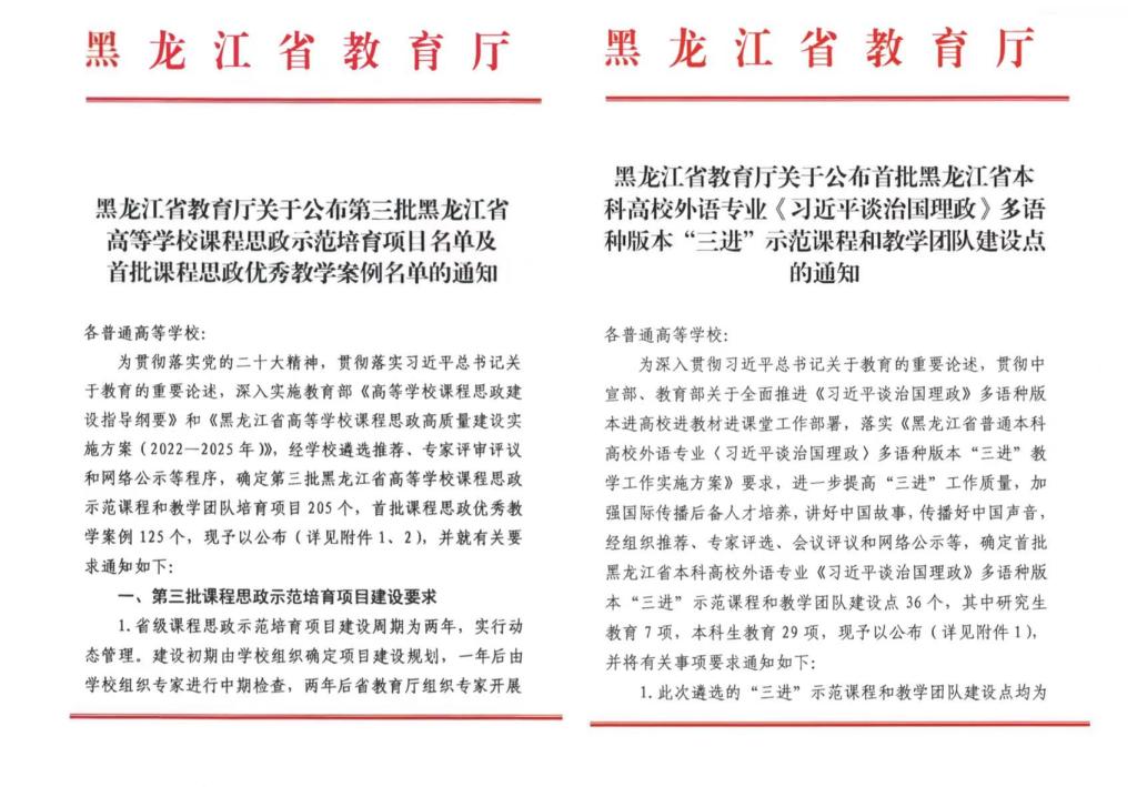 本网讯(特约记者 王虹丹)近日,省教育厅公布了黑龙江高校第三批课程思政示范培育项目、首批课程思政优秀案例、首批外语专业“三进”示范课程和教学团队建设点公示名单。我校Triz理论研究所曹福全老师的《创新思维与方法》课程确定为第三批黑龙江省高等学校课程思政示范培育项目;美术与设计学院解辉老师的《思政与艺术同行-<动画编剧>课程教学改革与创新实践》、经济管理学院李成龙老师的《物联网核心技术(传感器)及应用》确定为首批黑龙江省高等学校课程思政优秀案例;外国语学院刘迪老师的《翻译理论与实践2》及其课程团队确定为首批黑龙江省本科高校外语专业“三进”示范课程及教学团队建设点。