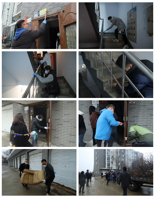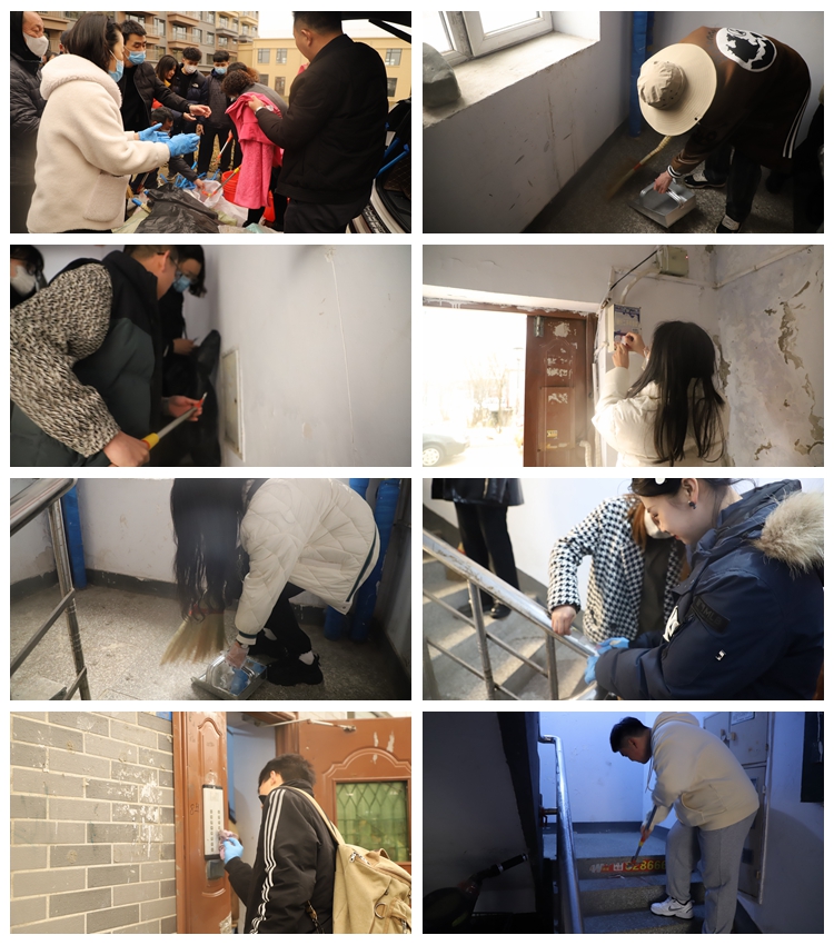 活动期间,全校18个党总支党员志愿者来到学府佳苑小区,拿好扫帚、拖布、铲子等清扫工具,分工明确地展开清洁楼道、清除小广告、消除卫生死角以及小区内的废弃物清除、冰雪清除等服务。