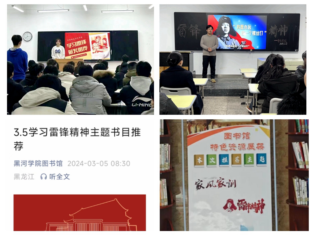 经济管理学院召开身边“活雷锋”先进事迹的分享会、“雷锋精神,厚‘记’薄发”学习笔记征集;音乐学院开展“青年志愿•普法有我”志愿服务宣讲会、“雷锋故事”分享会,同学们积极分享身边志愿故事,发出“向身边榜样学习”的号召,共同营造和谐、互帮、互助的校园氛围。图书馆线上发布学习雷锋精神的推文,线下专门设置雷锋精神特色图书展架,精心挑选了一批涵盖雷锋生平事迹、雷锋精神的时代解读、以及如何在日常生活中践行雷锋精神等内容的书籍供师生阅读。