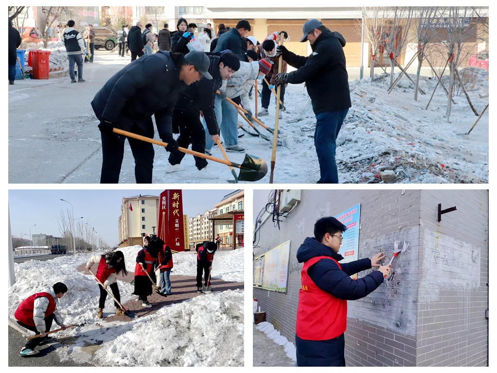 为深入贯彻落实党的二十大精神,更好地弘扬新时代雷锋精神和志愿服务精神,学校联合花园街道喇嘛台社区开展洁净家园志愿服务活动,全校18个党总支、百余名志愿者来到学府佳苑,拿好清扫工具,展开楼道、公共设施清洁以及清雪除冰等服务;教育科学学院和文化旅游学院的青年志愿者们分别前往龙科街安居小区和福龙社区开展志愿服务,拿起扫帚、铲子等工具对街道的小广告和积雪冰层等进行了清理。志愿者们用实际行动践行雷锋精神,推动新时代文明实践活动向纵深发展,引导群众积极参与新时代文明实践活动。