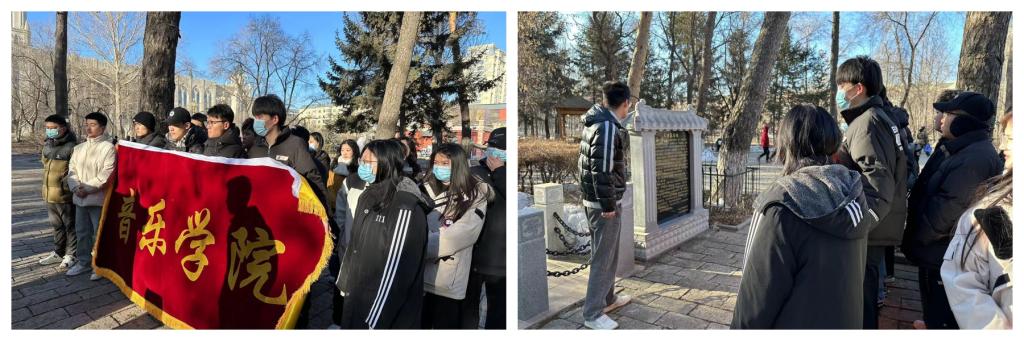 音乐学院组织党员、学生干部开展祭扫烈士墓活动,活动中,辅导员王泽楠讲述了王肃烈士的英勇事迹,并带领学生向各位烈士寄托哀思,提醒学生勿忘英雄、勿忘国耻,作为新时代的青年要始终把建设社会主义现代化国家为己任,为中国走向伟大复兴贡献自己的力量。