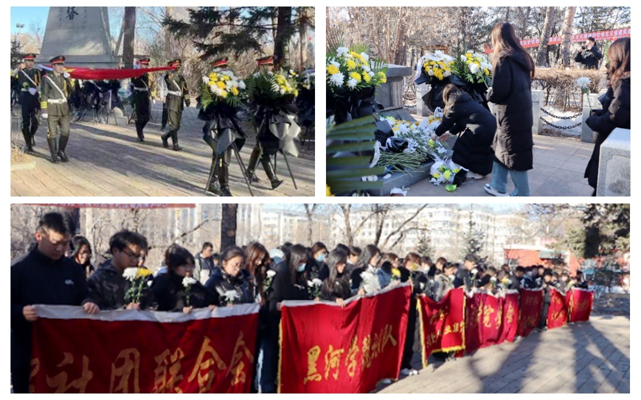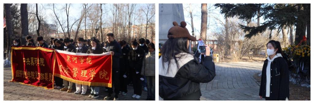 理学院党总支、理学院团委开展了清明祭英烈系列活动。全体师生党员、学生干部到达黑河市王肃公园开展了“清明寄哀思,共铸中华魂”的清明祭扫活动;同时,开展了多项主题团日活动,以中华经典诵读、团干部上讲台宣讲、红色情景剧等形式,带领广大团员和青年走进英烈故事、回顾峥嵘岁月,深切缅怀革命先烈丰功伟绩,赓续红色血脉。