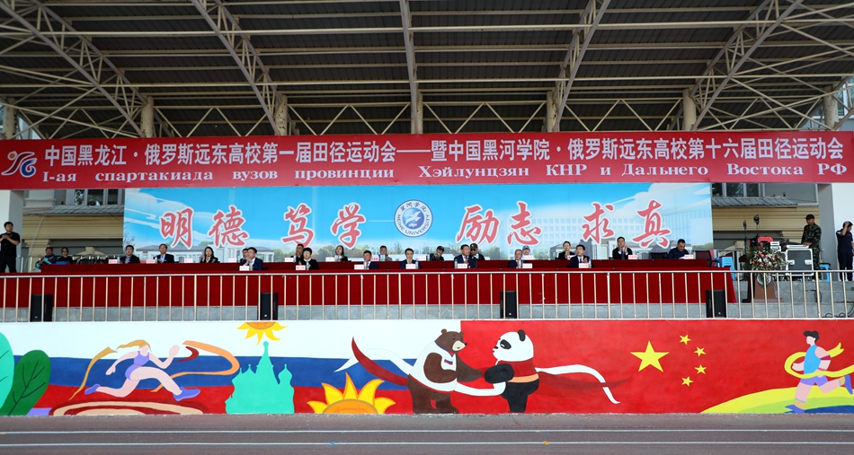 本网讯(记者 关月 陈虹旭)阳光和煦,歌声昂扬。经过2天的激烈比赛,5月31日,中国黑龙江·俄罗斯远东高校第一届田径运动会暨中国黑河学院·俄罗斯远东高校第十六届田径运动会圆满完成了各项赛程,落下帷幕。我校党政领导班子成员,各学院、各相关部门负责人及中俄运动员们参加闭幕式。闭幕式由校党委副书记、工会主席张焕强主持。