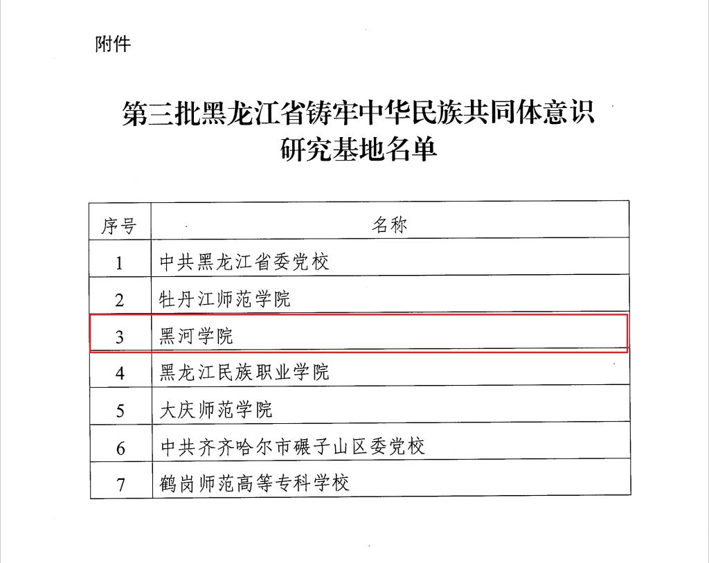 本网讯(记者 黄思翼)2月12日,省民宗委公布了第三批黑龙江省铸牢中华民族共同体意识研究基地名单,我校获批黑龙江省铸牢中华民族共同体意识研究基地。
