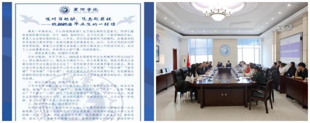 召开2025届毕业生第四次就业工作推进会,充分利用开学冲刺期、春招黄金期,全面部署推进2025届毕业生就业工作扎实稳步开展,进一步促进学校毕业生顺利就业、尽早就业,多措并举全力为2025届毕业生就业保驾护航,确保我校毕业生高质量充分就业和留省就业。发布“致毕业生的一封信”,从职业发展的角度,以情动人,以情感人,分析现阶段就业形势,引导毕业生合理定位求职目标,理性调整就业期望,树立“先就业再择业”的观念,鼓励毕业生到基层就业创业、到边疆地区、到祖国最需要的地方建功立业。