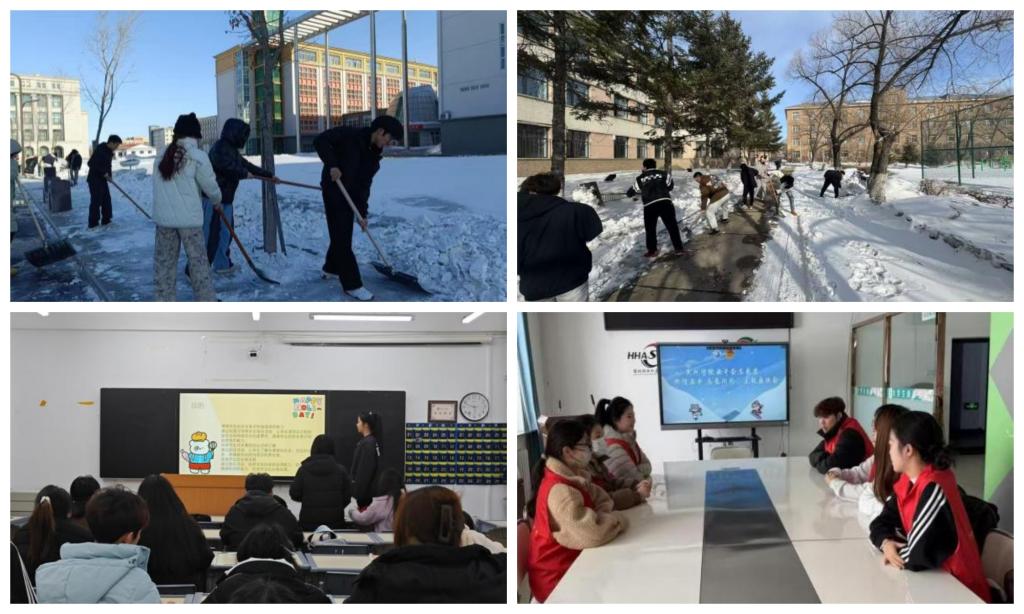 组织学生开展清雪除冰活动,锻炼学生动手能力,增强劳动意识、凝聚奋进力量,营造崇尚劳动、尊重劳动、热爱劳动的氛围。扎实推进劳动教育融入立德树人全过程,教育引导学生弘扬伟大劳动精神、培育良好劳动品质。围绕“燃情亚冬,志愿同行”主题,通过志愿服务分享、经验交流等形式,召开全校亚冬会志愿者座谈会,共同重温亚冬故事,凝聚青春正能量,分享自己的志愿服务经历与感悟。