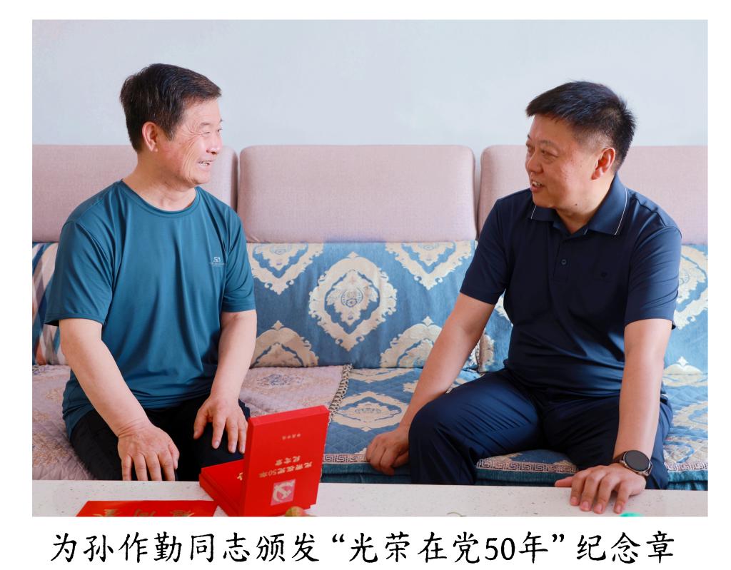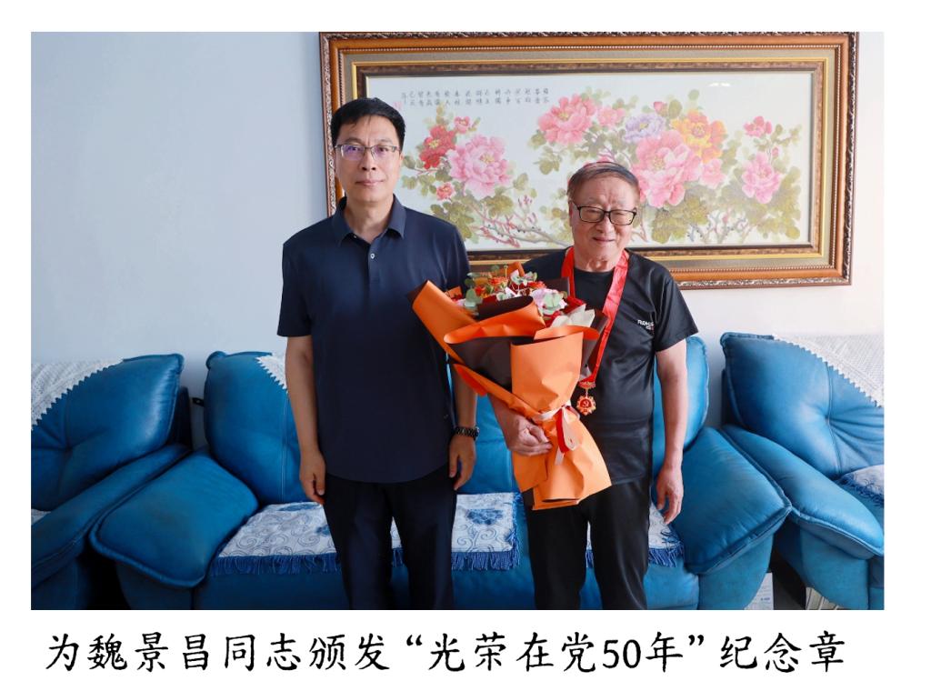 在慰问过程中,校领导与老党员们亲切交谈,仔细地询问他们的身体状况与家庭生活情况,衷心感谢他们为党和学校事业发展做出的贡献,希望他们继续关心学校发展,多提宝贵意见和建议。校领导为孙作勤和魏景昌同志颁发“光荣在党 50 年”纪念章、献上鲜花。在走访困难党员时,校领导详细了解他们的实际困难,叮嘱相关部门要落实好帮扶政策,切实解决他们的后顾之忧。老党员们纷纷表示,感谢学校的关心和爱护,将充分发挥党员的先锋模范作用,一如既往地支持学校各项工作,为学校发展建言献策。