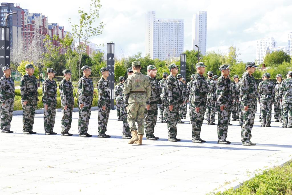 姜国玉做动员讲话,首先向辛勤付出、承担军训任务的部队表达感谢,并以四组关键词与2025级军训同学共勉:信仰与坚定,即在严肃思考中明确人生方向;磨砺与升华,即在严格训练中淬炼坚韧品格;规范与自律,即在严明纪律中塑造优良习惯;融合与共进,即在严密协作中培育集体精神。希望同学们始终以奋斗姿态激扬青春,坚定必胜信念,做到眼中有光、脚下有路、肩上有责、心中有德,勇毅前行,不断进取,为梦想奋斗,勇敢追光。