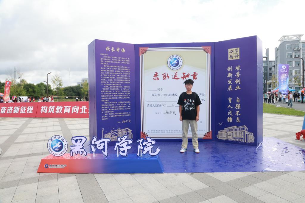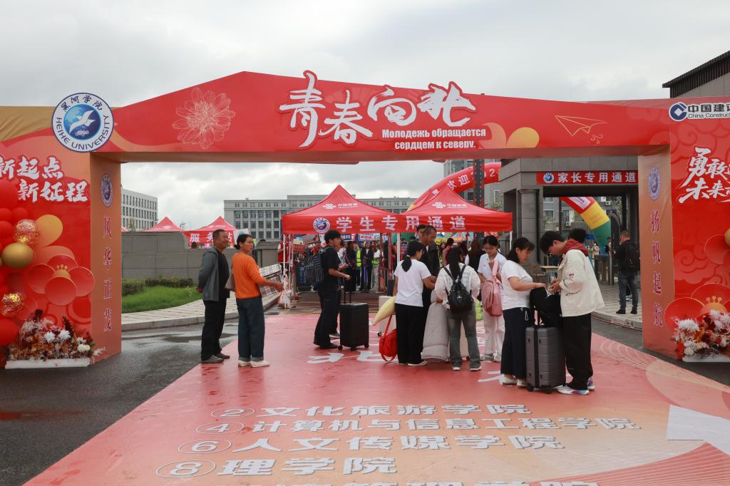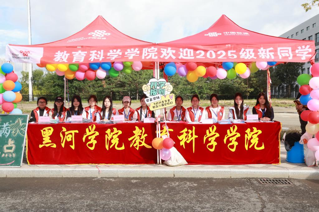 广场上,标志性雕塑与迎新展板交相辉映,将学校的历史底蕴与对新生的期待具象呈现;图书馆前红阶醒目,“青春向北” 的字样不仅是视觉焦点,更成为新生探索知识之路的精神指引;“乘风破浪 星耀大海”主题打卡墙前,新生们纷纷合影留念,定格开启大学旅程的重要时刻;道路旁“最好的时代迎接最好的你”迎新彩旗随风招展,将活力与暖意传递到校园每个角落;明德楼前,学生社团通过特色展演、互动体验等方式展现风采,让新生直观感受丰富多元的校园文化。从校园景观到文化展示,每一处细节,都饱含黑河学院对新同学的热烈欢迎,盼学子们于此开启精彩新篇,在知识海洋乘风破浪,绽放光芒。