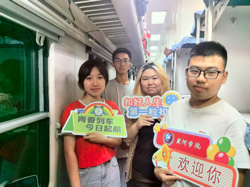 学校与黑河铁路(集团)有限责任公司携手开展“黑河学院第一粒扣子”迎新专列活动,特设专用车厢以确保新生享有优质的乘车体验。学校在黑河火车站、汽车站及机场均设立接站点,根据班次提供精准服务,志愿者在途中向新生详细介绍校园及周边环境。新大门开设迎新通道与报到入口,多媒体屏幕实时更新报到数据,新生仅需刷身份证即可迅速入校。校内配备行李接驳车,将行李直接送达寝室楼下,实现了“入校—报到—入住”的无缝衔接。