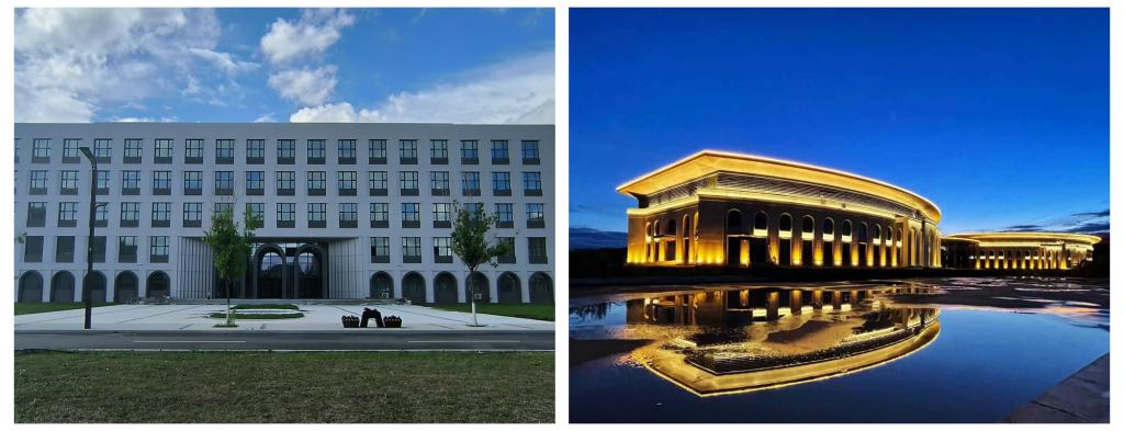 现代化校园建设成效显著,办学空间布局持续优化。学校高标准推进校园基础设施升级改造,统筹推进重点项目建设与后勤保障设施改造,切实提升办学条件保障水平。建成综合体育馆(含冰球馆)、游泳馆、大学生双创服务中心、中俄产教融合协同创新实训楼、中俄文化艺术实践中心(音乐厅)改建项目、中央街校门等一批重点工程,新增建筑面积5.5万平方米,落实建设资金3.48亿元。其中,综合体育馆(含冰球馆)总占地面积60422平方米,总建筑面积13090平方米(综合体育馆7553平方米、冰球馆5537平方米),顺利通过竣工验收并完成不动产权登记,该项目是我校首次争取到中央预算内资金8000万元建成的校园工程;2400平方米的大学生双创服务中心建成投用后,已完成竣工备案并成功出租,由杭州天猫校园技术服务有限公司中标入驻,实现了社会效益与经济效益的有机统一;中俄产教融合协同创新实训楼已正式投入使用,为产业学院建设及特色应用型高校发展提供了有力支撑;11号学生公寓项目已完成建设规划、可行性研究报告批复等前期工作,建成后将有效改善学生住宿条件。累计投入资金8000余万元,完成40余项后勤基础设施整改工程,涵盖2、4、5、8、9号学生公寓及探知楼、求知楼等教学楼的内外整体维修改造,同步推进路面维修、湿地改造、管网升级、食堂修缮及“三馆一厅”周边道路硬化等工作。同时,学校将景观提升与环境育人深度融合,优化室外空间功能布局,提高绿地使用效率,升级校园夜间照明系统,使校园面貌焕然一新,全面满足师生工作、学习和生活需求。